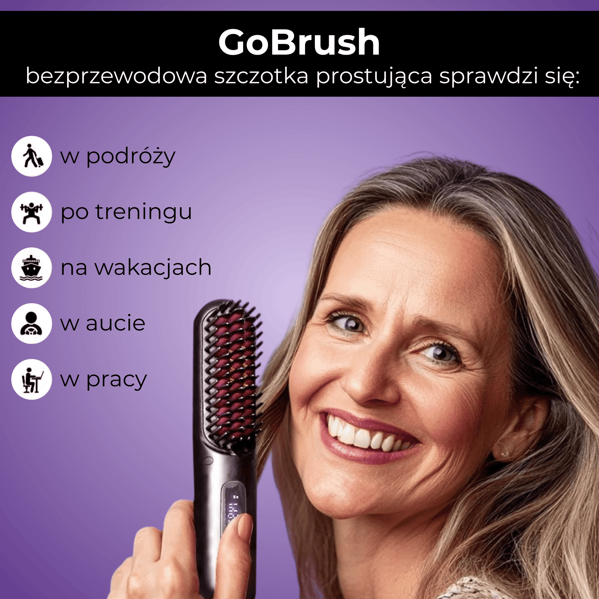 Sprawdź GoBrush w swoim tempie i zobacz, jak ułatwia codzienne układanie włosów - w domu, w pracy i w podróży.