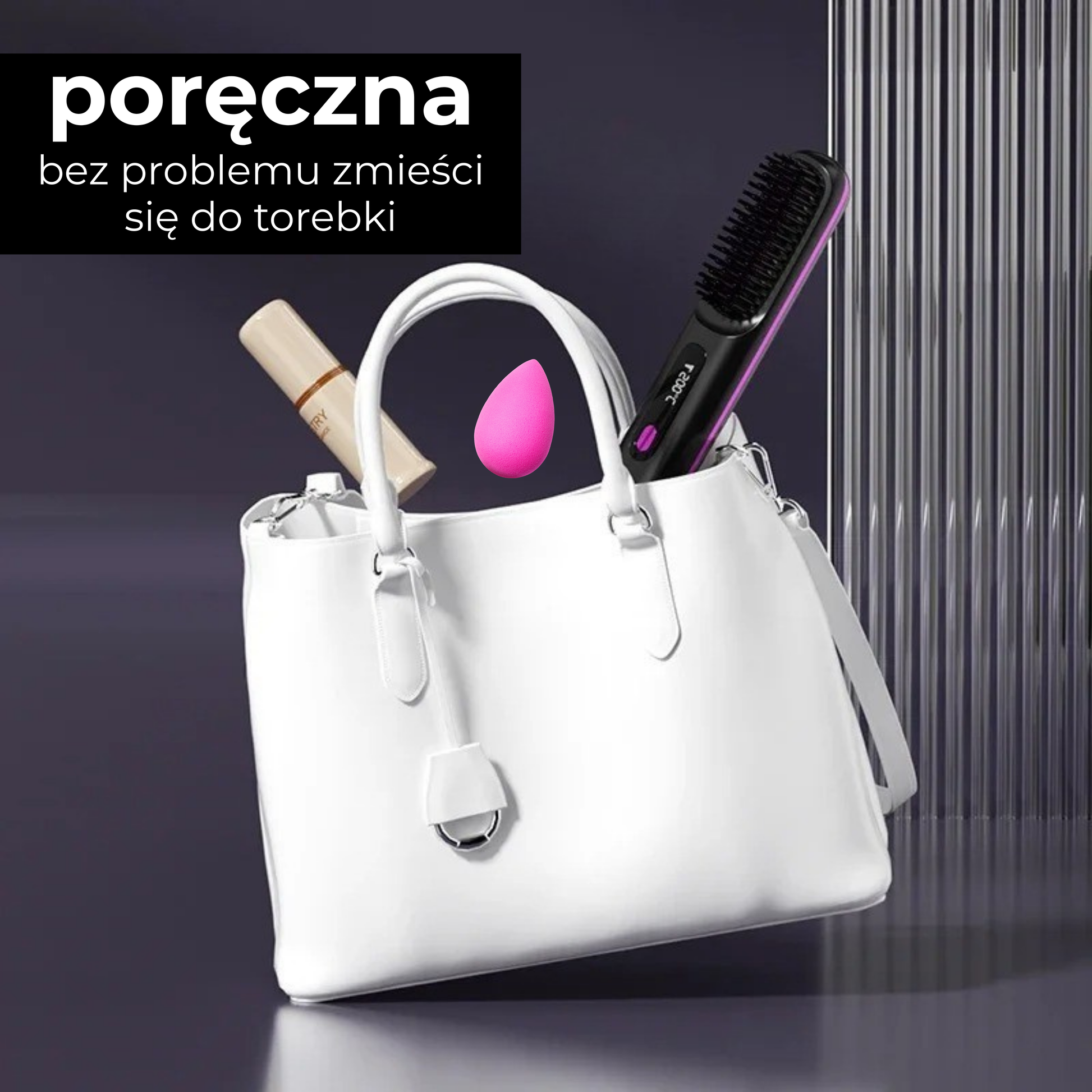 Idealna do pracy i podróży oraz szybkich poprawek w ciągu dnia. Mieści się w każdej torebce i pozwala cieszyć się gładkimi, lśniącymi włosami zawsze i wszędzie.